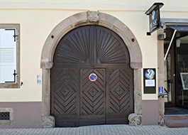 Like other medieval residences in Rosheim, this house was transformed during the Renaissance by a notable of the town. This was Councilor Paulus Brotbecker, whose name is inscribed in full, along with his wife’s first name, on either side of a winegrower’s emblem, on the lintel of the pedestrian gate. The vine is wrapped around a stake, according to the cultivation method used at the end of the 16th century. A weather vane tops the building.