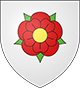 « D’argent à la rose de gueules boutonnée d’or et pointée de sinople. »