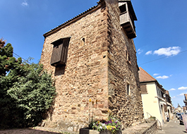 Dating from 1154, this house was long considered the only medieval civil building in Rosheim. But some twenty residences dating from the 12th to the 15th century were ultimately recorded. It is, in any case, one of the oldest examples of medieval civil architecture in Alsace. Its square plan, thick walls, rusticated sandstone stones, and small openings give it the appearance of a fortified tower. The ground floor, which is used for storage, is accessible through a semicircular door, while access to the upper floor is via an external staircase. The central twin bay window is decorated with two heads and a plant motif. Under the roof, one of the rusticated quoins also bears a sculpted face. It was the home of notables from Rosheim. It was indeed equipped with all the amenities of the time, as evidenced by the presence of outdoor latrines on the upper floor! Listed as a historic monument since 1922 and restored in 2001, the Maison Romane welcomes you by reservation to tell you about its long history.