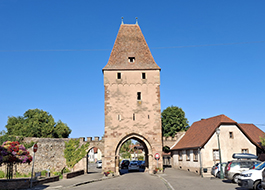 Rosheim’s fortifications consist of two concentric walls. The central town, which includes the city’s main buildings around the Church of Saints Peter and Paul, was surrounded in the 12th century by a wall of limestone rubble. The number and location of the turrets are no longer known. However, the two gate towers still exist. Integrated into the municipal buildings, the Zittglockturm, or Clock Tower, provides access to the Mittelstadt, or city center. It has housed the public clock since at least the end of the 17th century.