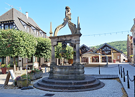 Built in 1605, this monumental six-bucket well is attributed to Jacob Zumsteg. It is reminiscent of those in Obernai and Boersch. The inscription on the entablature of the north face indicates a renovation in 1764. A stone lion was then installed. This one was painted yellow, while the rest of the building was gray. The structure escaped destruction in 1841, when the town hall decided to replace it with a pump for hygiene reasons.